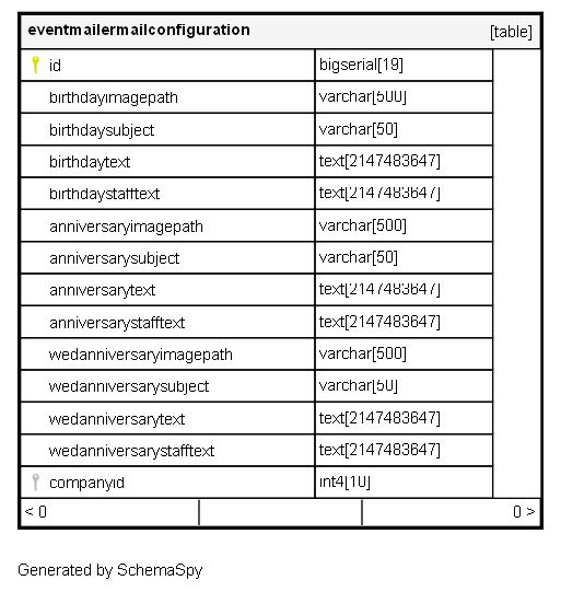 | eventmailermailconfiguration_pkey | Primary key | Asc | id |