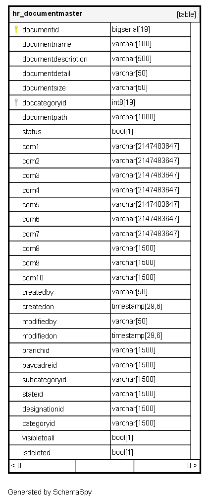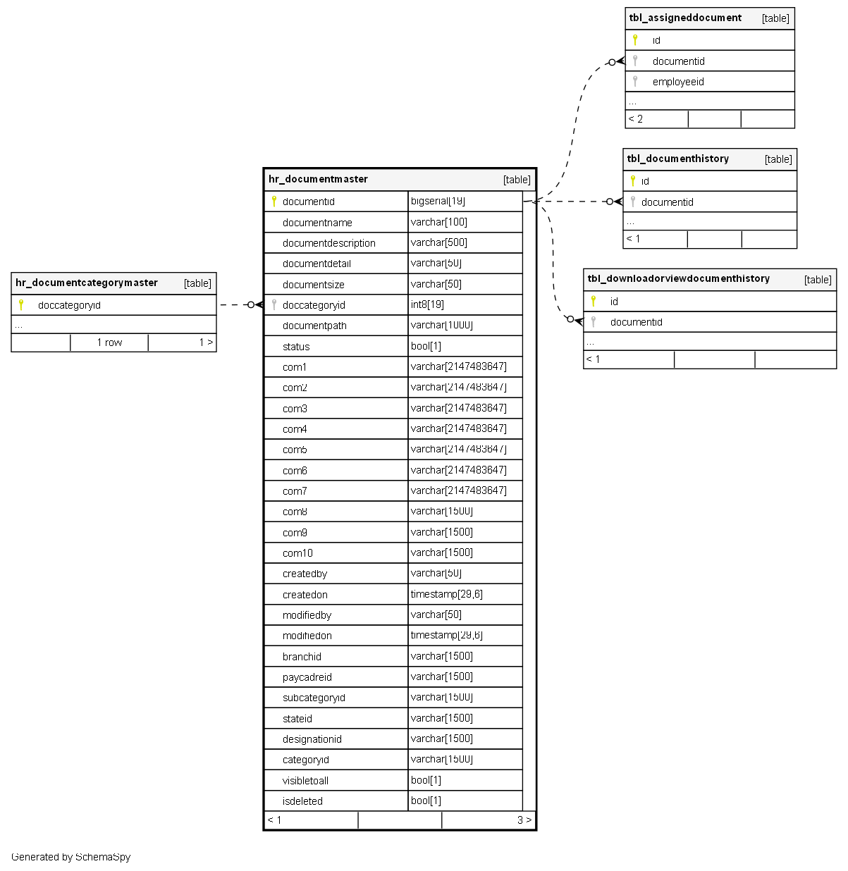| hr_documentmaster_pk_hr_documentmaster | Primary key | Asc | documentid |