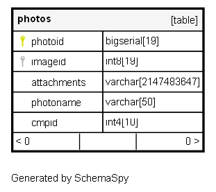 | photoid | bigserial | 19 | √ | nextval('photos_photoid_seq'::regclass) |