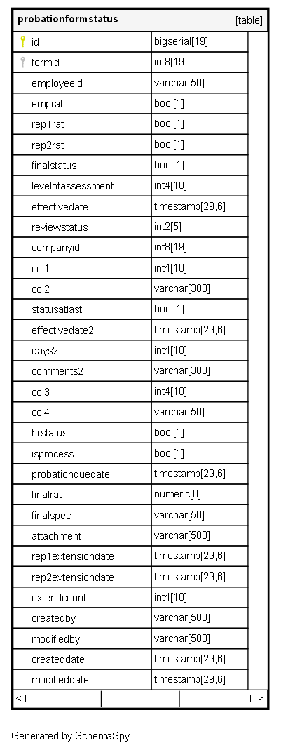 | probationformstatus_pk_probationformstatus | Primary key | Asc | id |