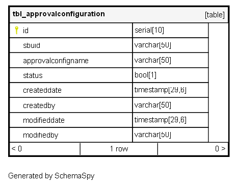 | id | serial | 10 | √ | nextval('tbl_approvalconfiguration_id_seq'::regclass) |