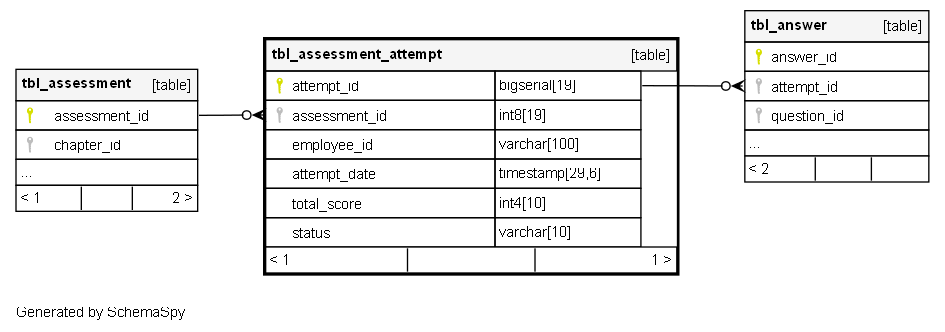 | attempt_id | bigserial | 19 | √ | nextval('tbl_assessment_attempt_attempt_id_seq'::regclass) |