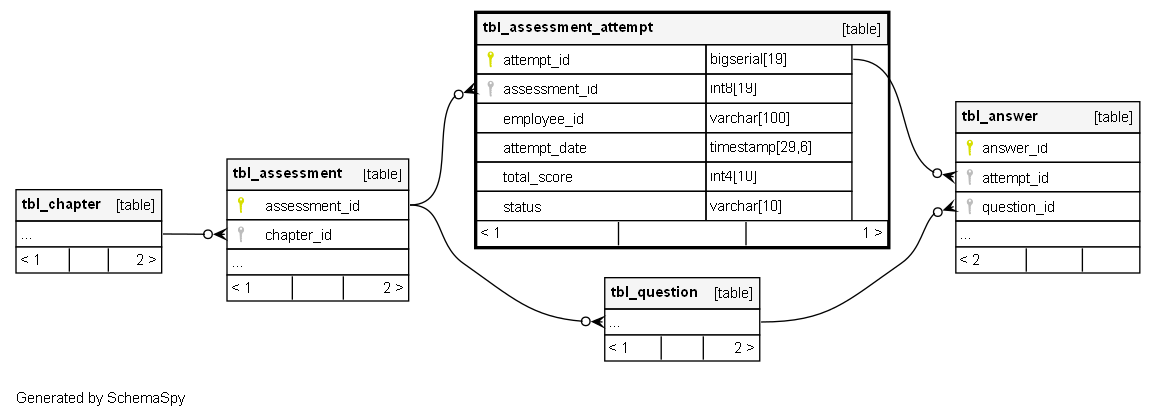 | tbl_assessment_attempt_pkey | Primary key | Asc | attempt_id |