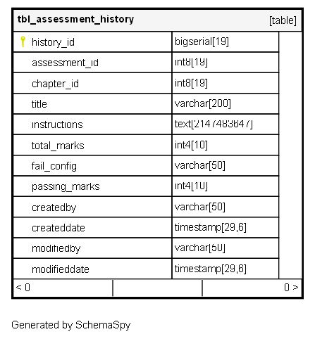 | history_id | bigserial | 19 | √ | nextval('tbl_assessment_history_history_id_seq'::regclass) |