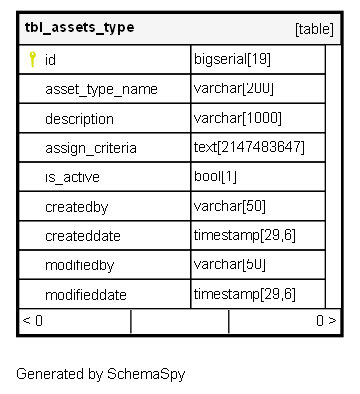 | id | bigserial | 19 | √ | nextval('tbl_assets_type_id_seq'::regclass) |