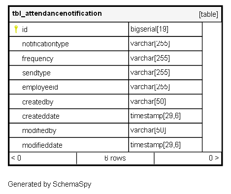 | tbl_attendancenotification_pk_tbl_attendancenotification | Primary key | Asc | id |