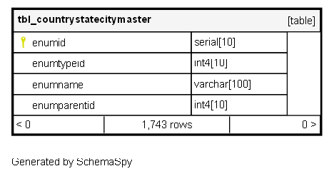 FK: public.tbl_countrystatecitymaster.enumid (Self-Referencing Foreign Key) |