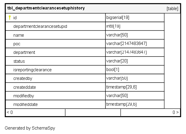| tbl_departmentclearancesetuphistory_pk__tbl_depa__3214ec079985d | Primary key | Asc | id |