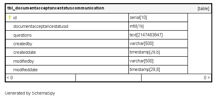 | tbl_documentacceptancestatuscommunication_pkey | Primary key | Asc | id |