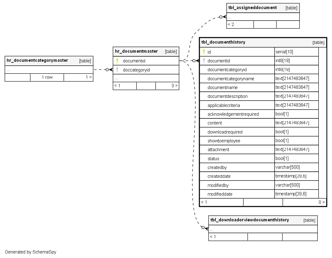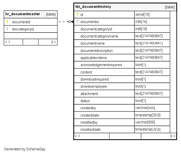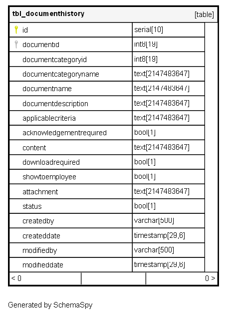 | tbl_documenthistory_pkey | Primary key | Asc | id |
