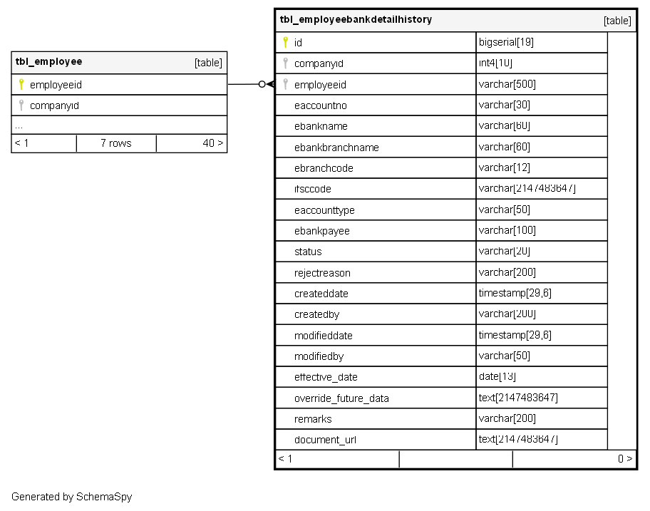 | tbl_employeebankdetailhistory_pk_tbl_employeebankdetailhistory | Primary key | Asc | id |