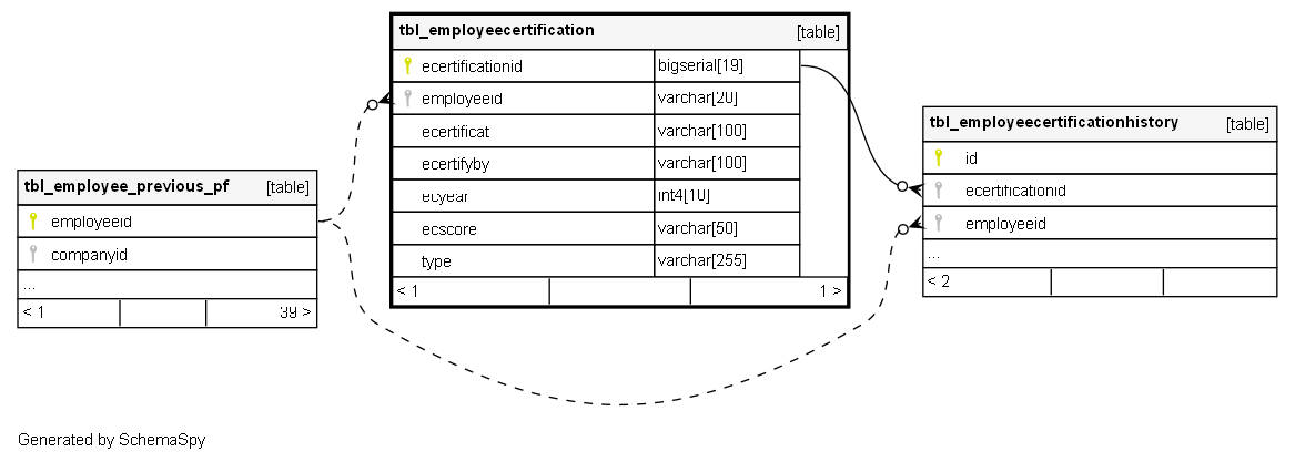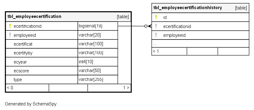 | tbl_employeecertification_pk_tbl_employeecertification | Primary key | Asc | ecertificationid |