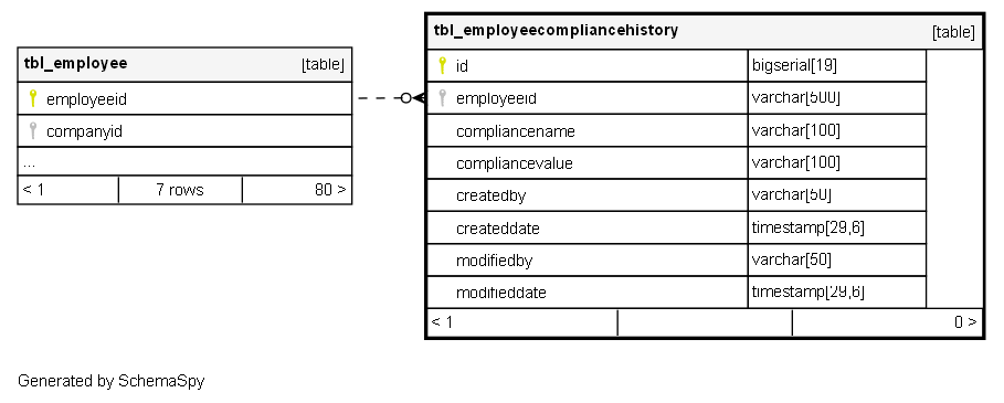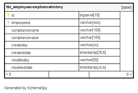 | id | bigserial | 19 | √ | nextval('tbl_employeecompliancehistory_id_seq'::regclass) |