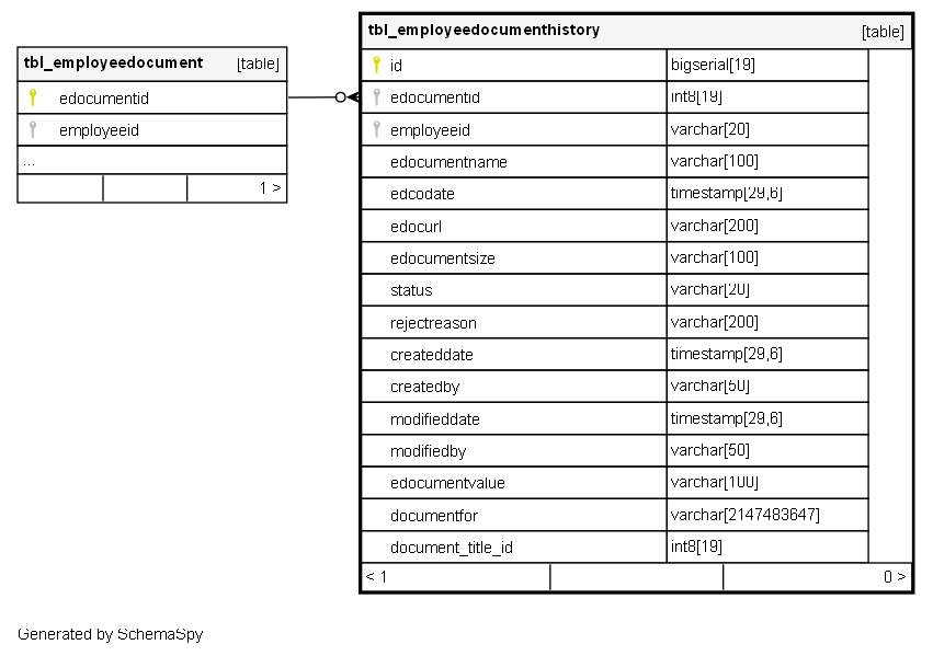 | tbl_employeedocumenthistory_pk_tbl_employeedocumenthistory | Primary key | Asc | id |