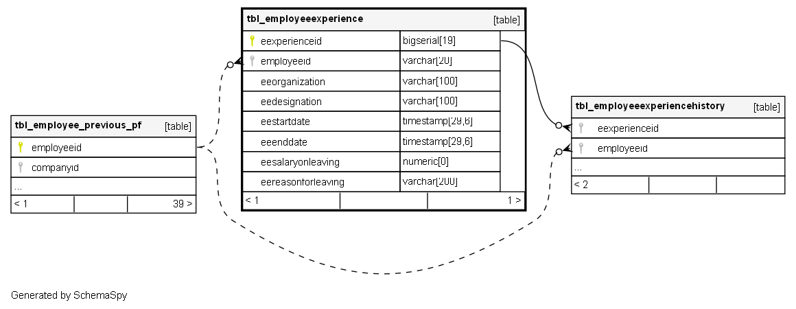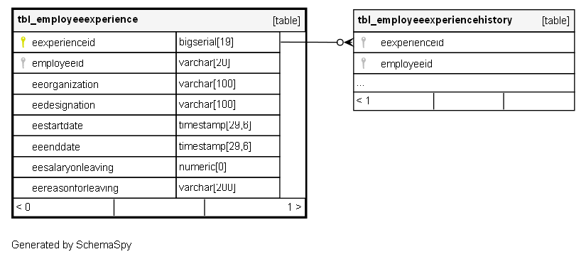 | tbl_employeeexperience_pk_tbl_employeeexperience | Primary key | Asc | eexperienceid |