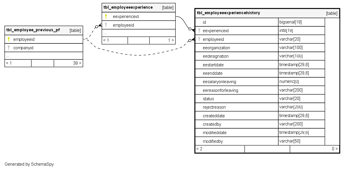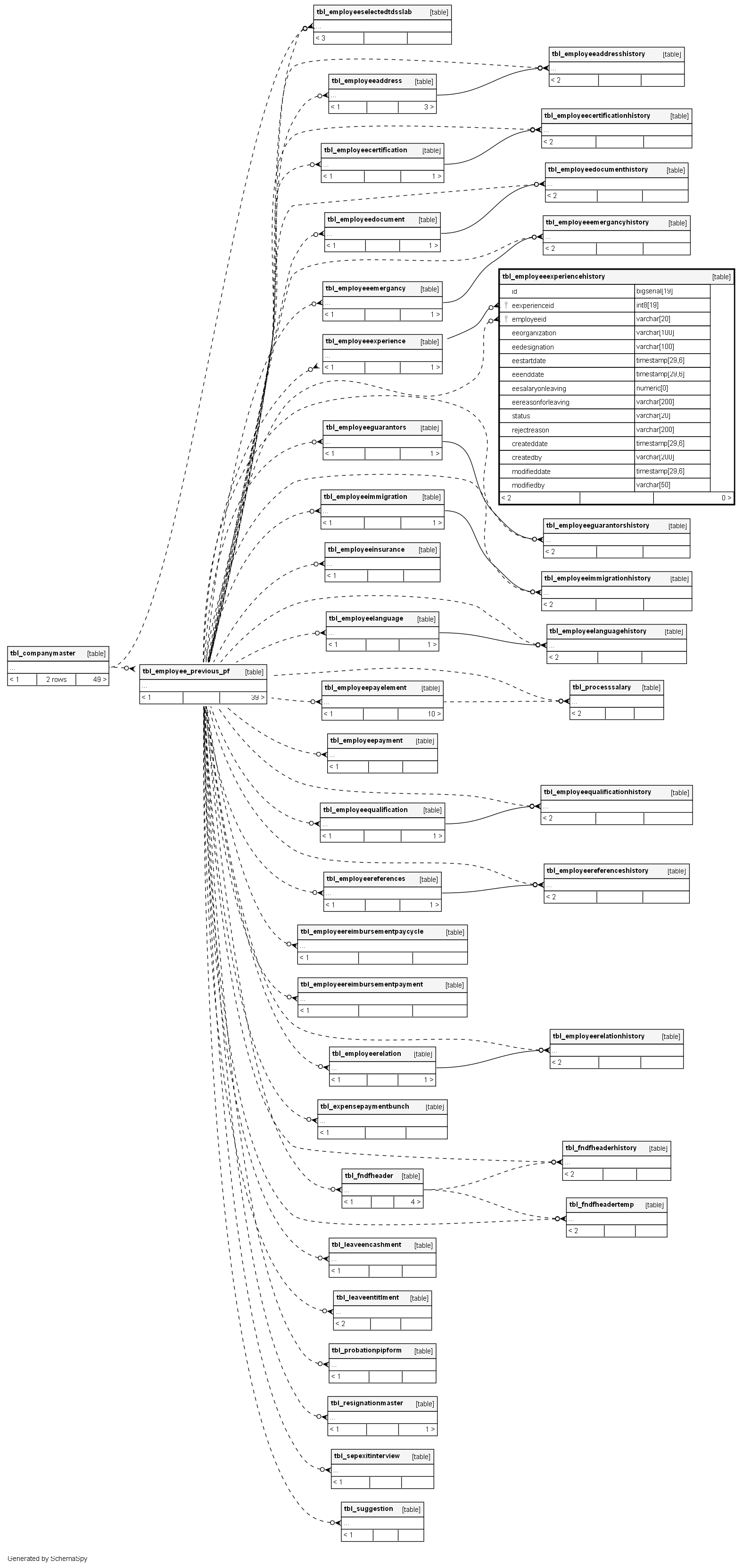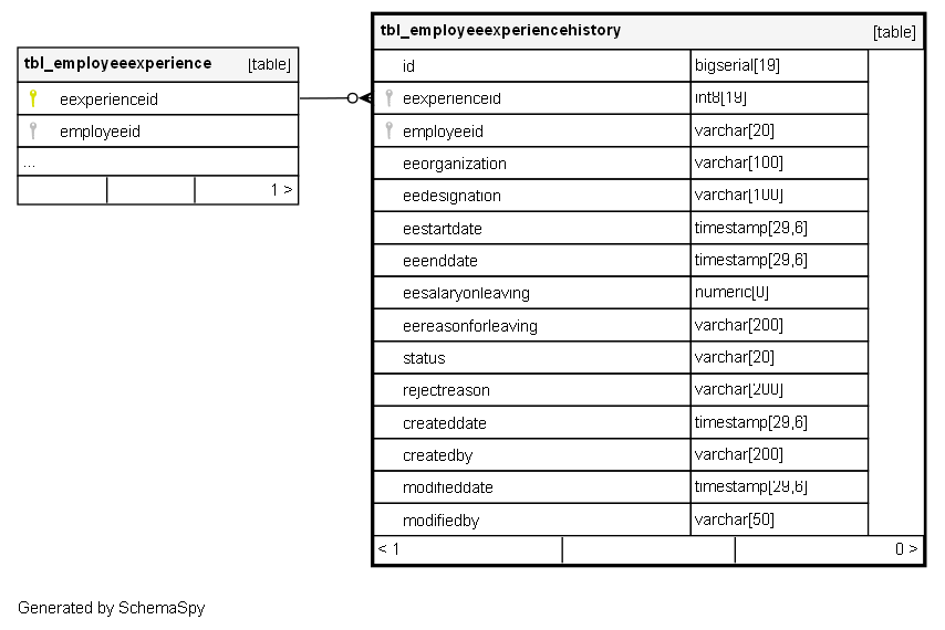 | id | bigserial | 19 | √ | nextval('tbl_employeeexperiencehistory_id_seq'::regclass) |