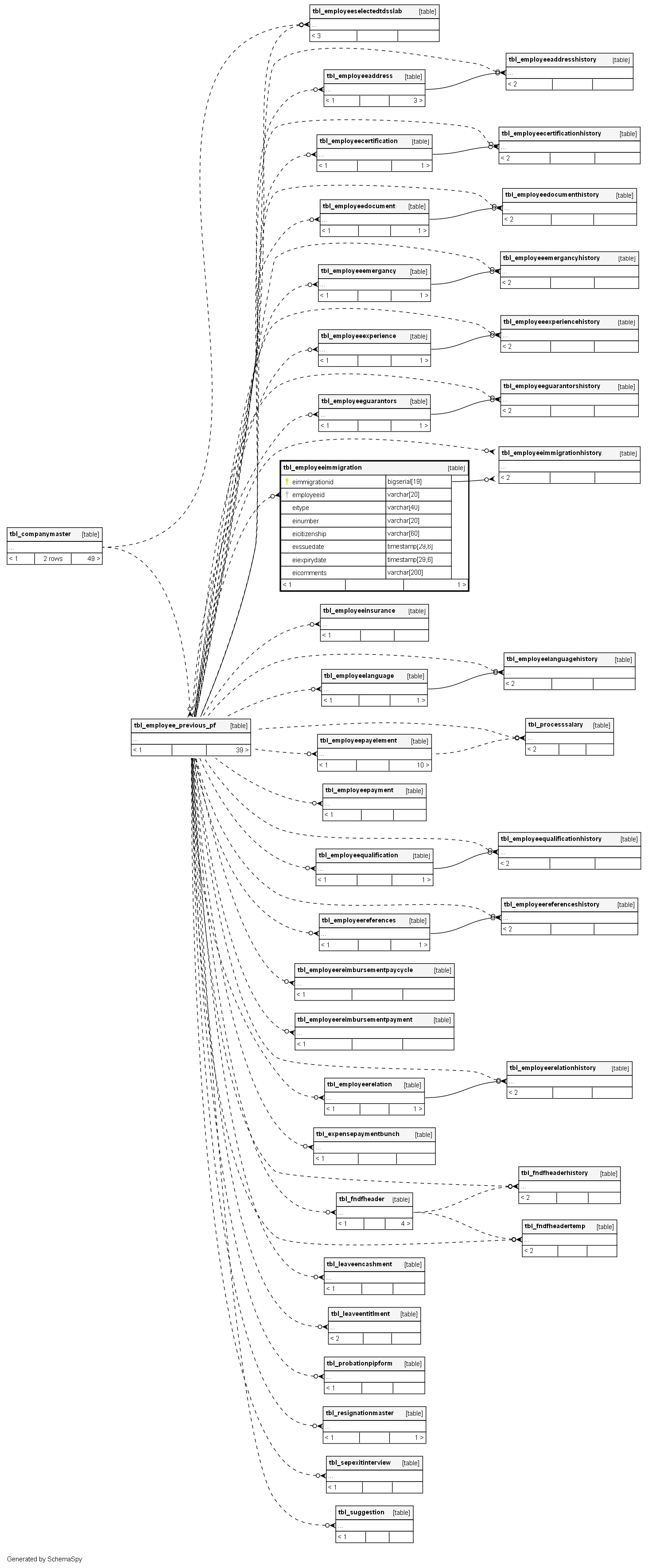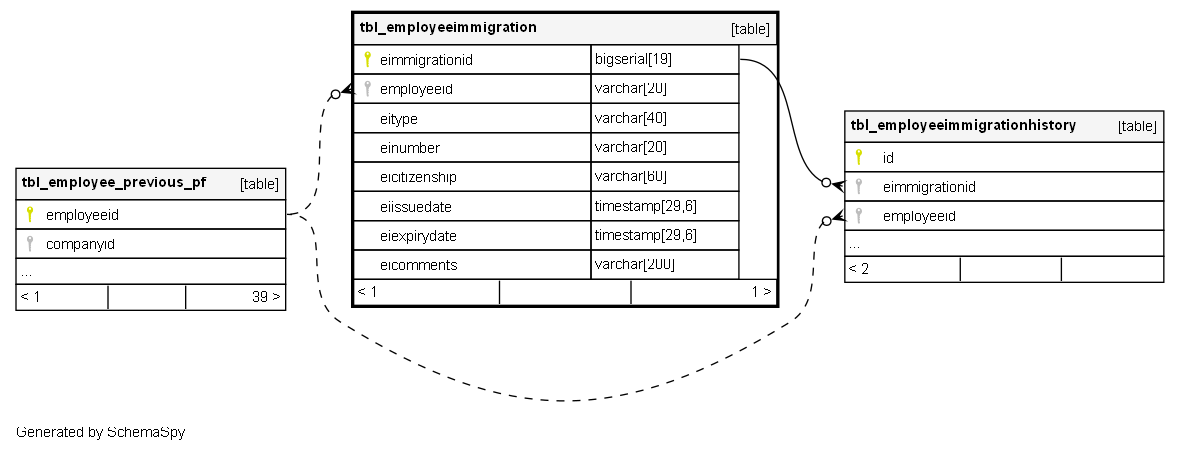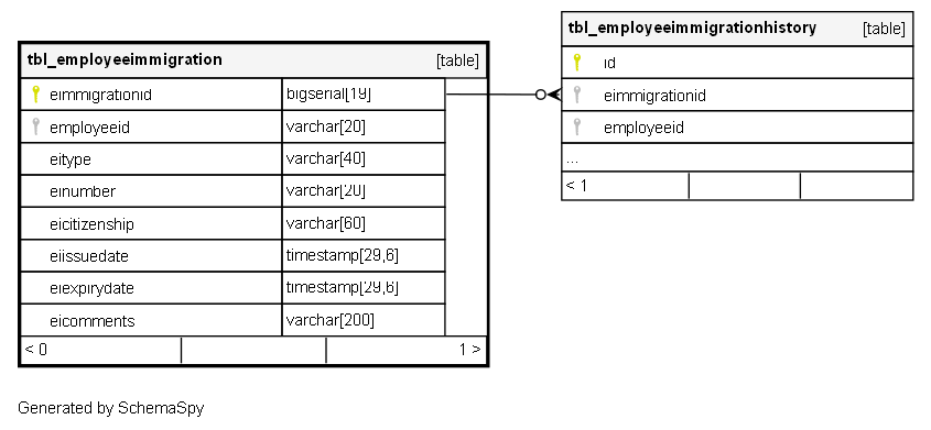 | tbl_employeeimmigration_pk_tbl_employeeimmigration | Primary key | Asc | eimmigrationid |