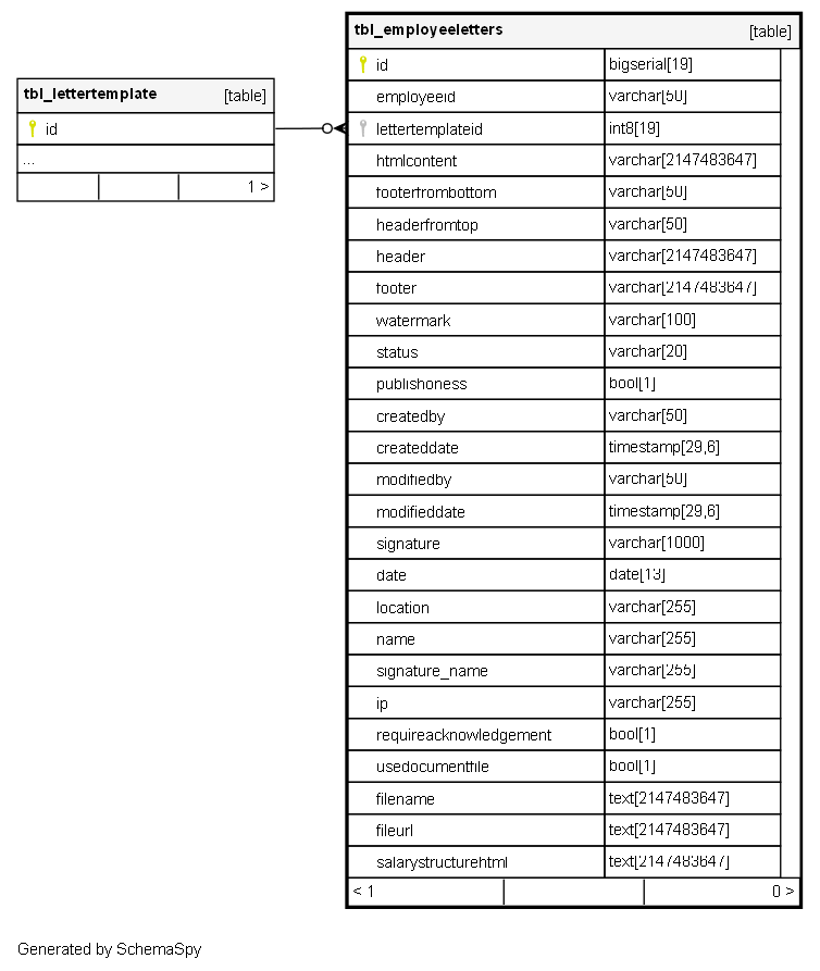 | tbl_employeeletters_pk_tbl_employeeletters | Primary key | Asc | id |