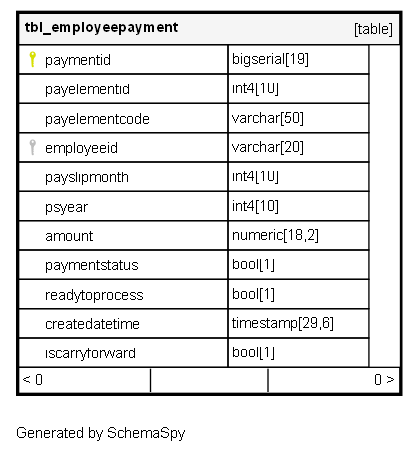 | paymentid | bigserial | 19 | √ | nextval('tbl_employeepayment_paymentid_seq'::regclass) |