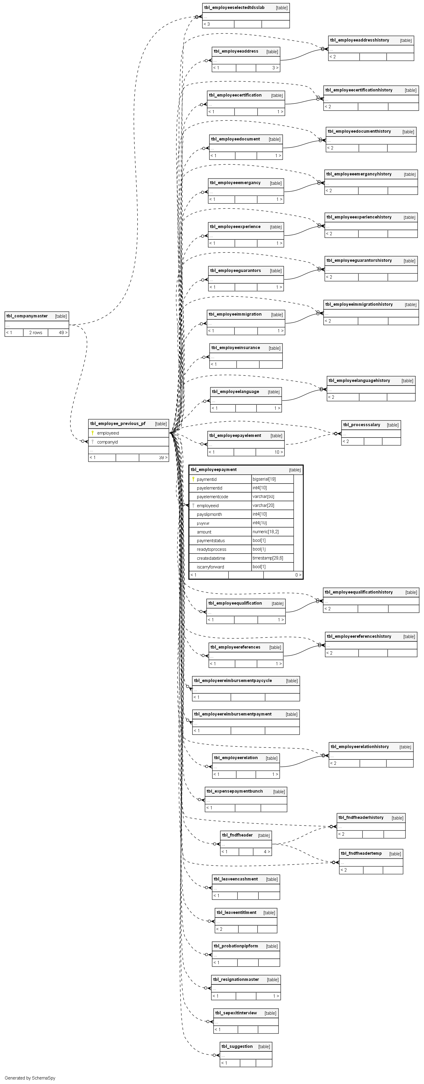 | tbl_employeepayment_pk_tbl_employeepayment | Primary key | Asc | paymentid |