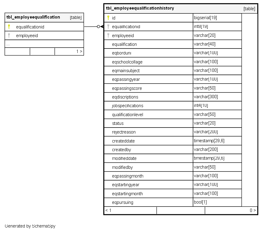 | id | bigserial | 19 | √ | nextval('tbl_employeequalificationhistory_id_seq'::regclass) |