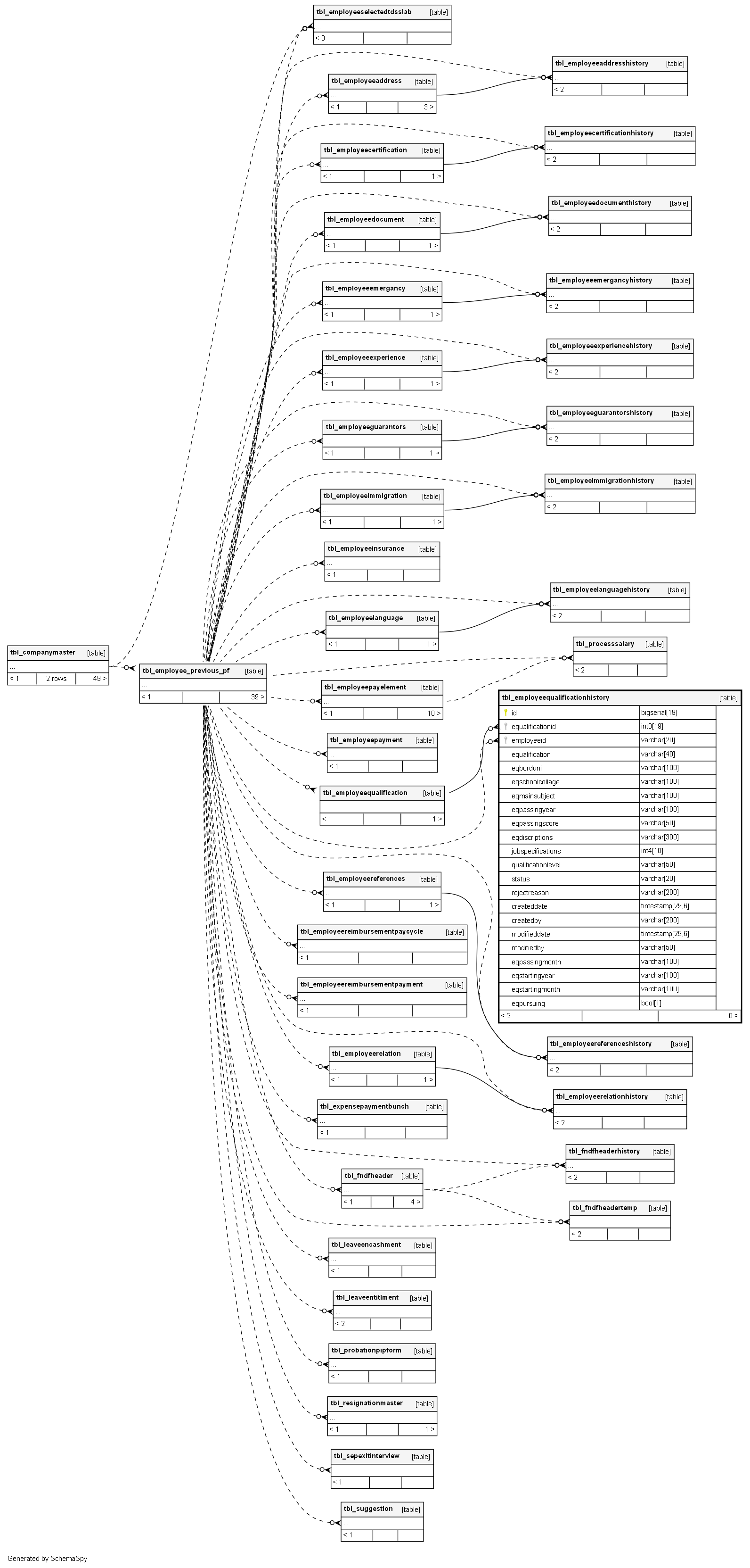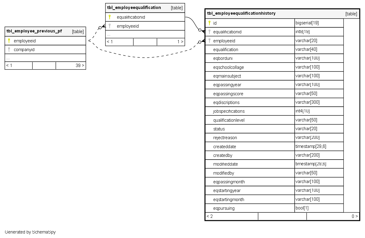 | tbl_employeequalificationhistory_pk_tbl_employeequalificationth | Primary key | Asc | id |