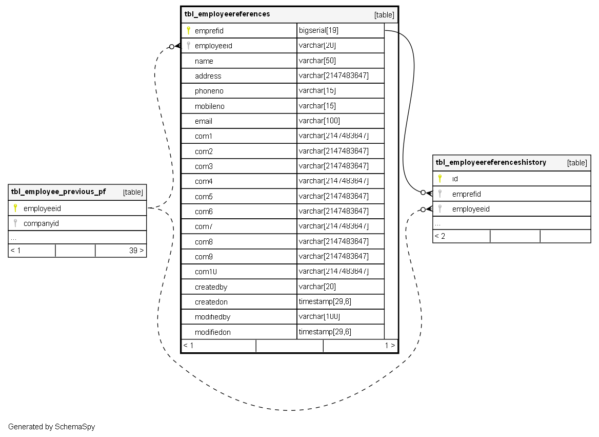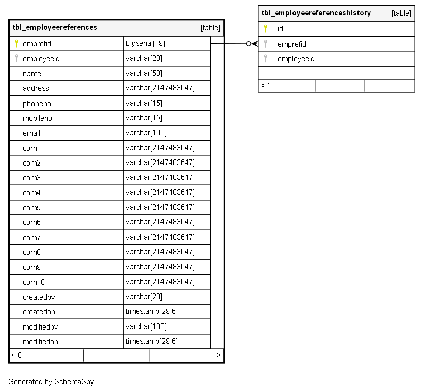 | emprefid | bigserial | 19 | √ | nextval('tbl_employeereferences_emprefid_seq'::regclass) |