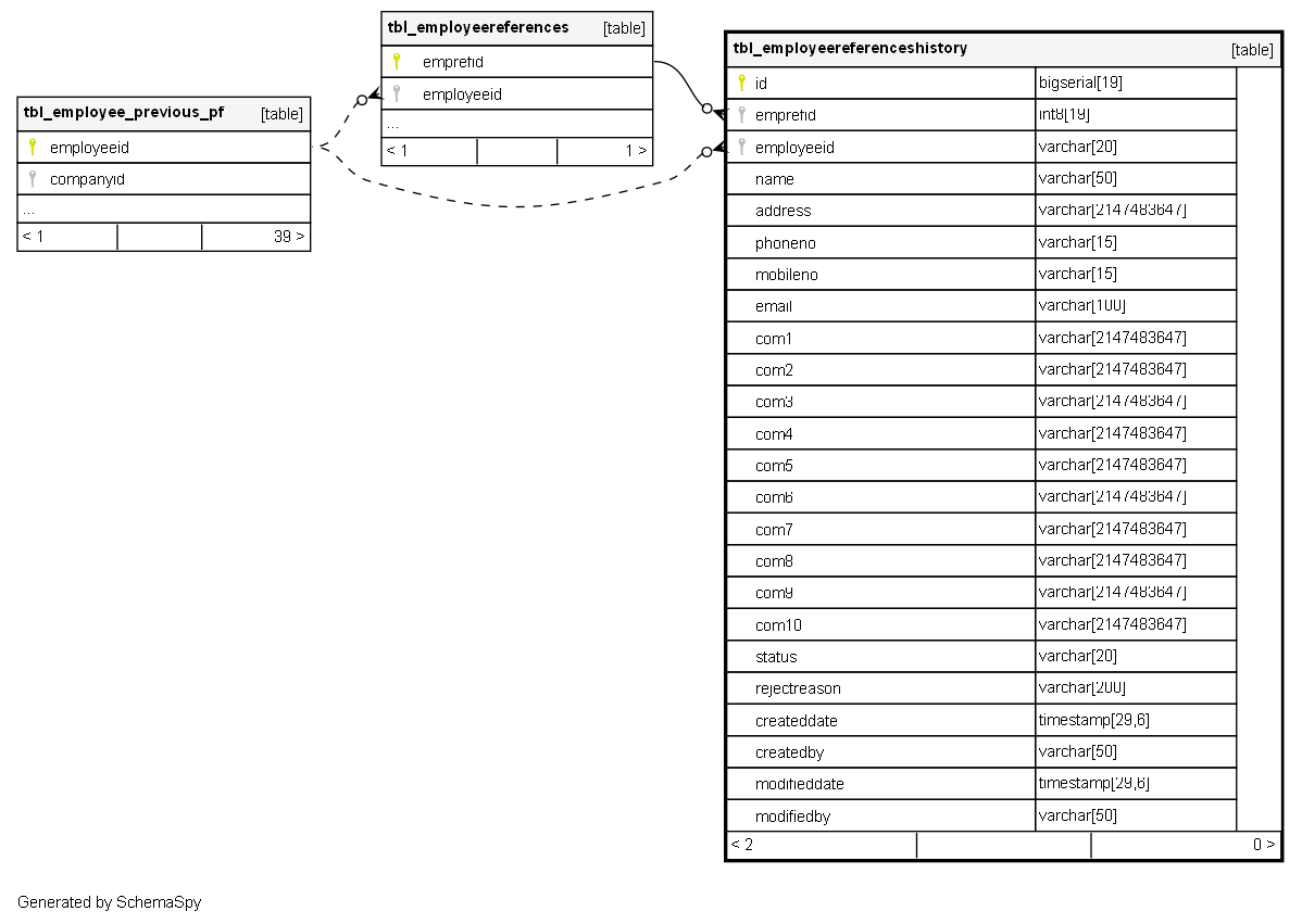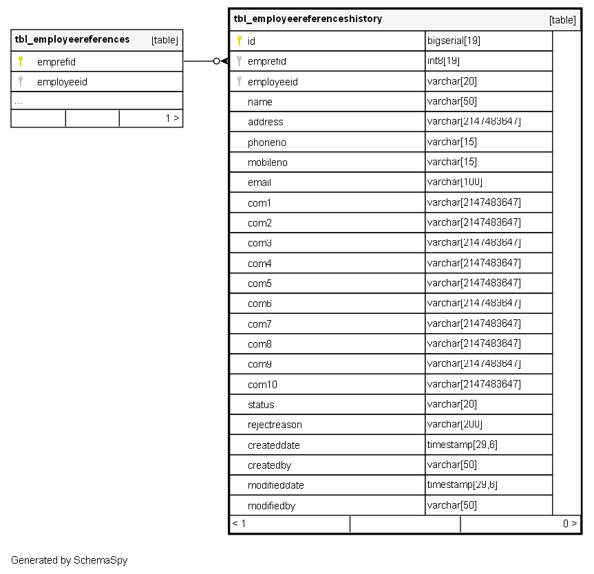 | tbl_employeereferenceshistory_pk_tbl_employeereferenceshistory | Primary key | Asc | id |