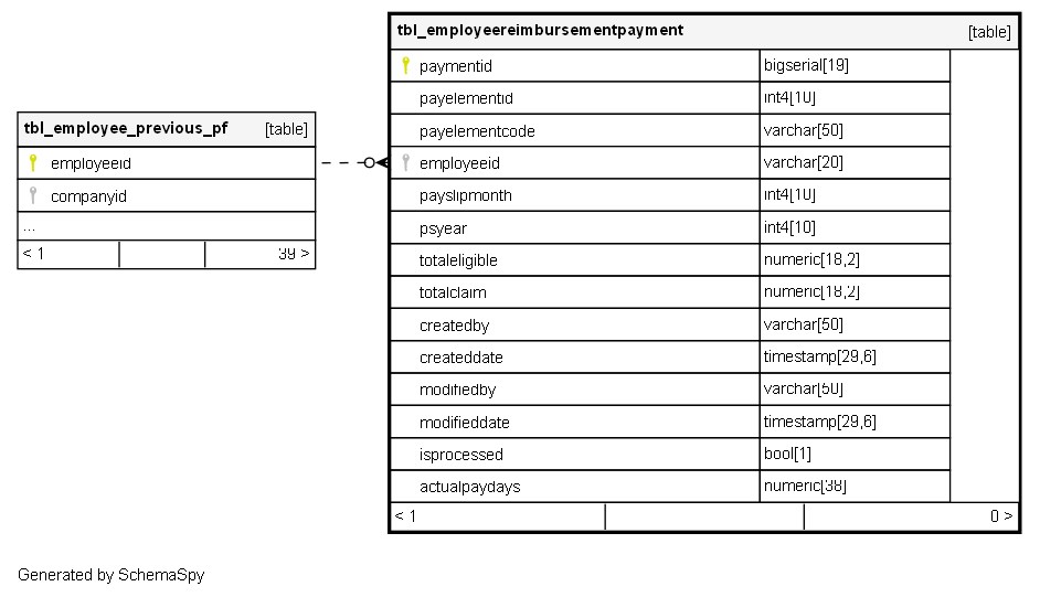 | tbl_employeereimbursementpayment_pk_tbl_employeereimbursementpa | Primary key | Asc | paymentid |