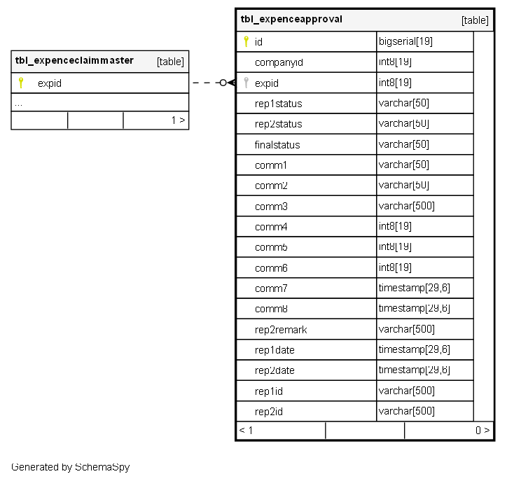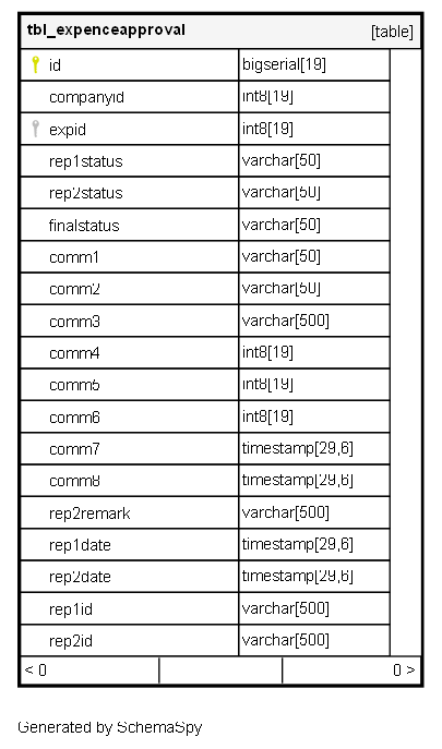 | id | bigserial | 19 | √ | nextval('tbl_expenceapproval_id_seq'::regclass) |