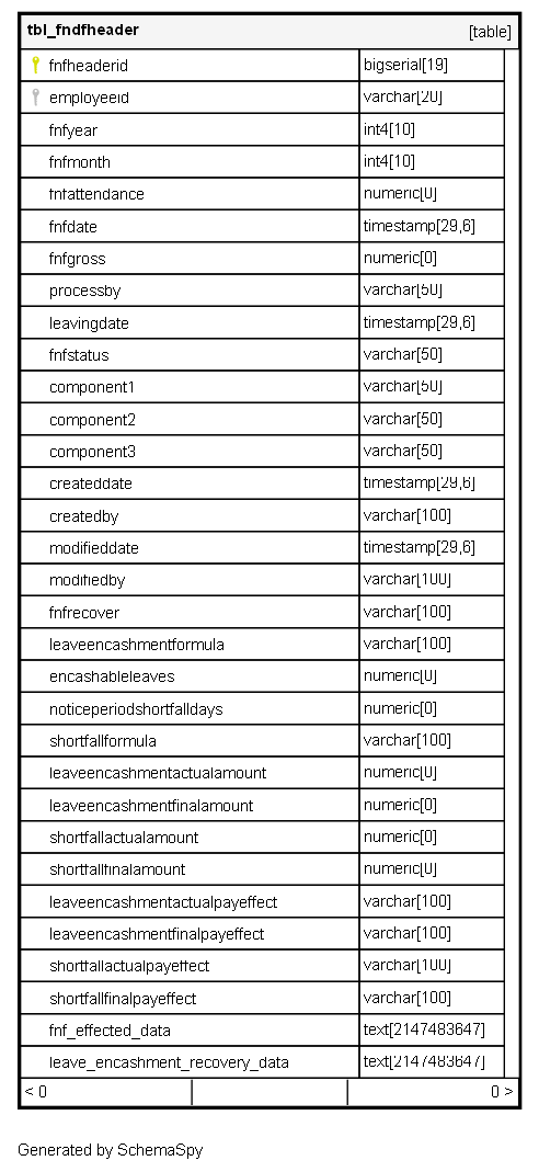 | tbl_fndfheader_pk_tbl_fndfheader | Primary key | Asc | fnfheaderid |