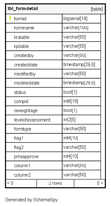 | formid | bigserial | 19 | √ | nextval('tbl_formdetail_formid_seq'::regclass) |