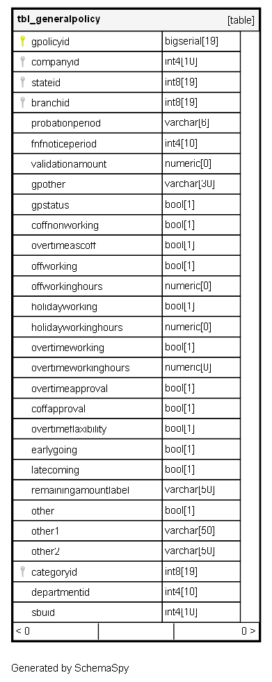 | tbl_generalpolicy_pk_tbl_generalpolicy | Primary key | Asc | gpolicyid |