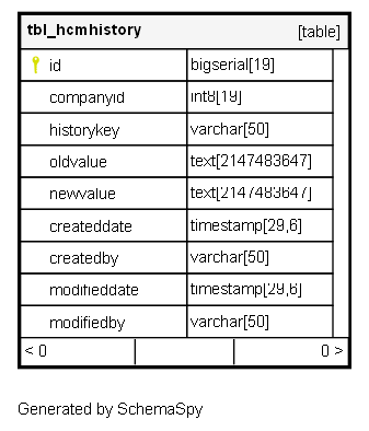 | id | bigserial | 19 | √ | nextval('tbl_hcmhistory_id_seq'::regclass) |