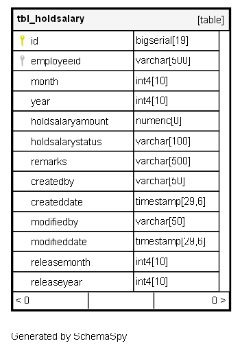 | id | bigserial | 19 | √ | nextval('tbl_holdsalary_id_seq'::regclass) |