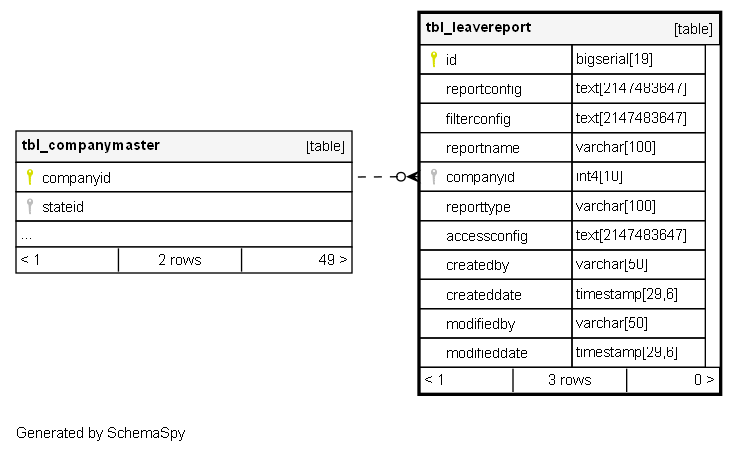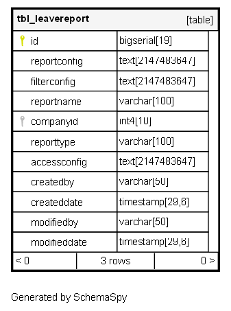 | ux_tbl_leavereport_companyid_reportname | Must be unique | Asc/Asc | companyid + reportname |