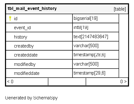| id | bigserial | 19 | √ | nextval('tbl_mail_event_history_id_seq'::regclass) |