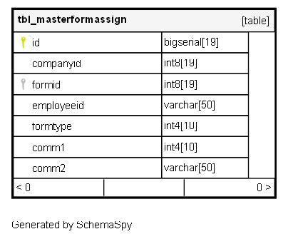 | id | bigserial | 19 | √ | nextval('tbl_masterformassign_id_seq'::regclass) |