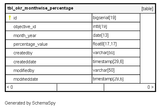 | pk_tbl_okr_monthwise_percentage | Primary key | Asc | id |