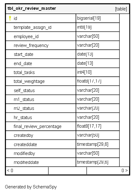 | pk_tbl_okr_review_master | Primary key | Asc | id |