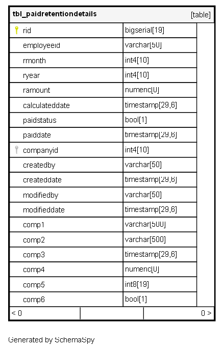 | rid | bigserial | 19 | √ | nextval('tbl_paidretentiondetails_rid_seq'::regclass) |