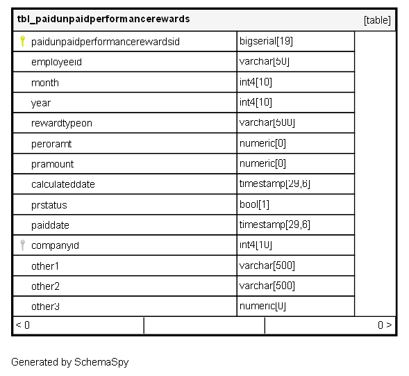 | tbl_paidunpaidperformancerewards_pk_tbl_paidunpaidperformancere | Primary key | Asc | paidunpaidperformancerewardsid |
