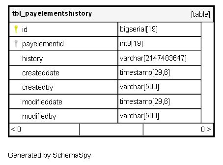| id | bigserial | 19 | √ | nextval('tbl_payelementshistory_id_seq'::regclass) |