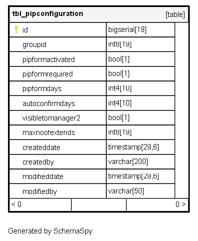 | id | bigserial | 19 | √ | nextval('tbl_pipconfiguration_id_seq'::regclass) |