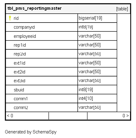 | rid | bigserial | 19 | √ | nextval('tbl_pms_reportingmaster_rid_seq'::regclass) |