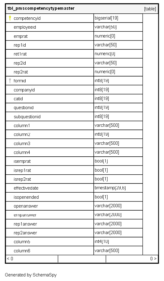 | tbl_pmscompetencytypemaster_pk_tbl_pmscompetencytypemaster | Primary key | Asc | competencyid |