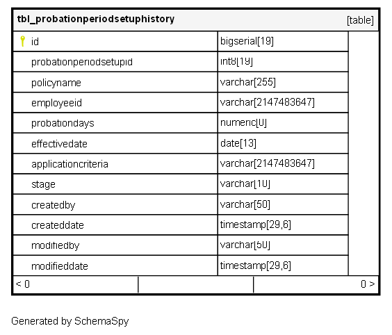| id | bigserial | 19 | √ | nextval('tbl_probationperiodsetuphistory_id_seq'::regclass) |