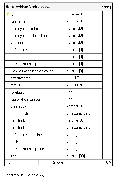 | tbl_providentfundruledetail_pk_tbl_providentfundruledetail | Primary key | Asc | id |