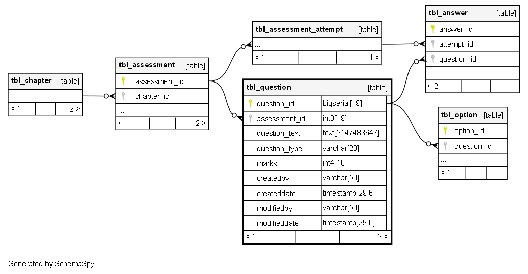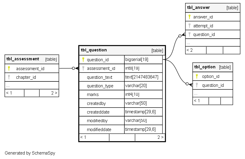 | tbl_question_pkey | Primary key | Asc | question_id |