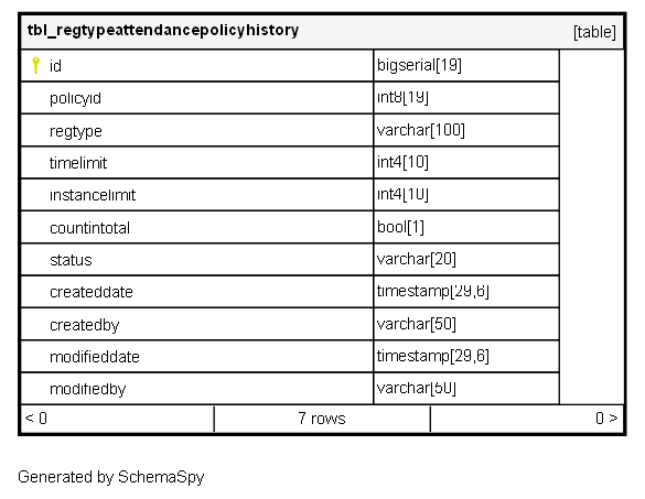 | tbl_regtypeattendancepolicyhistory_pk__tbl__regtypeattendancepo | Primary key | Asc | id |